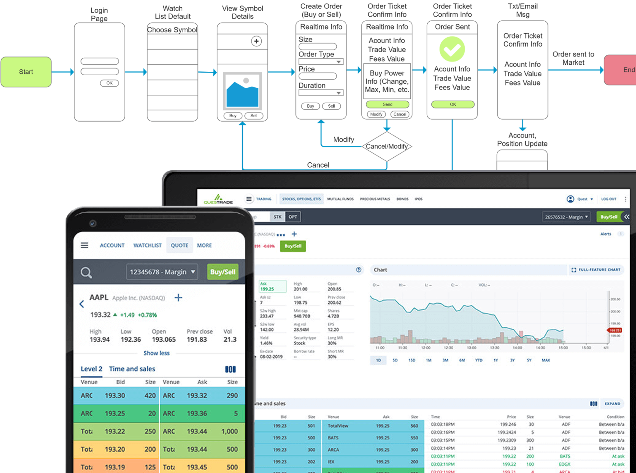 Questrade, a Retail Broker, needed a new Web and Mobile stock market trading platform. As a retail broker who first started in leasing one room with high speed data lines and licence subscriptions to 3rd party Windows based trading platform for day traders.