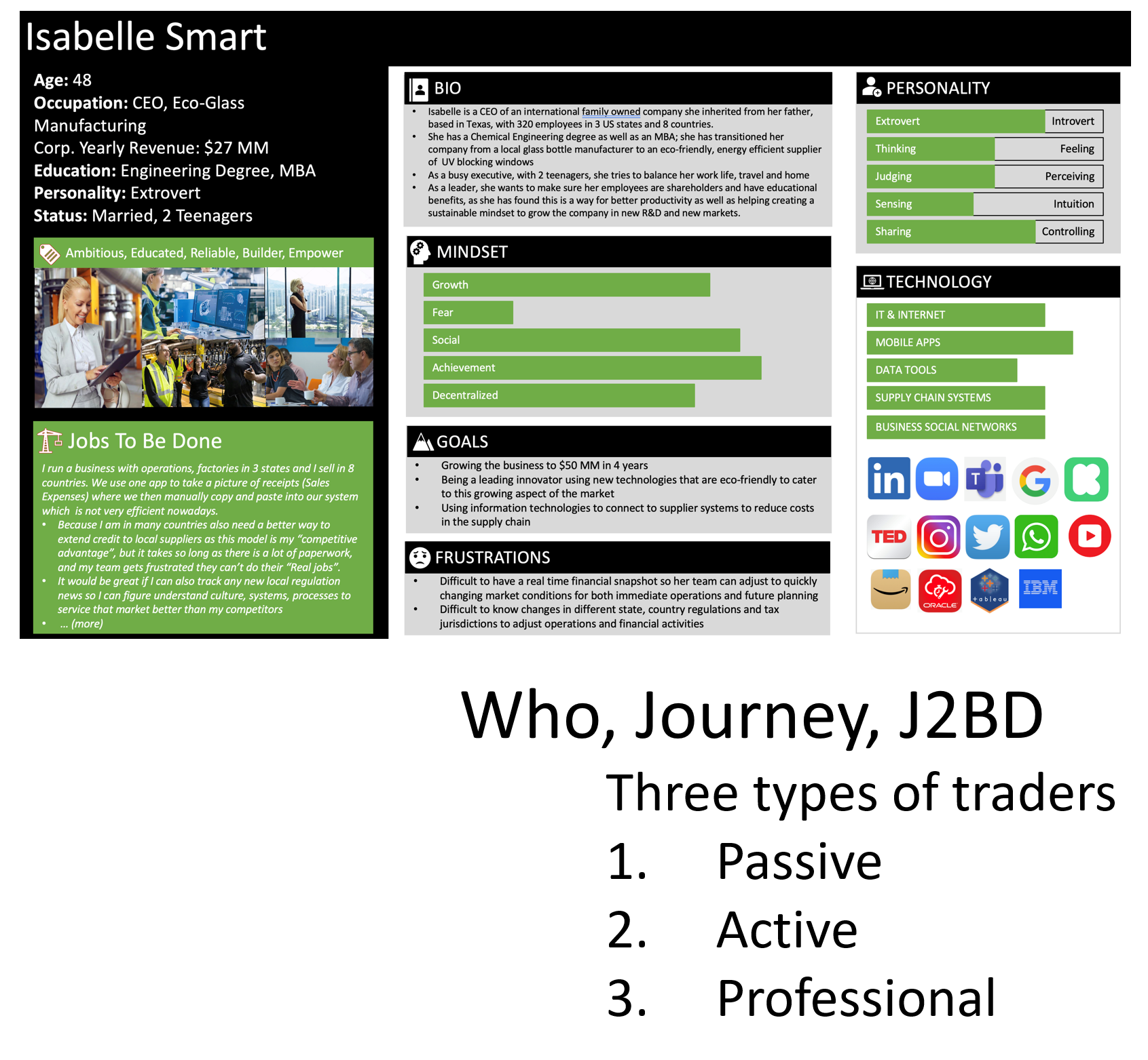 Metric: 10% increase in Assets Under Management and "fix" 8 minutes it takes to do a mobile trade